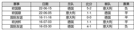 意大利 VS 德国两队近10年的交战次数为5场,意大利0胜3平2负,赢球概率为0.0%,平局概率为60.0%,输球概率为40.0%。