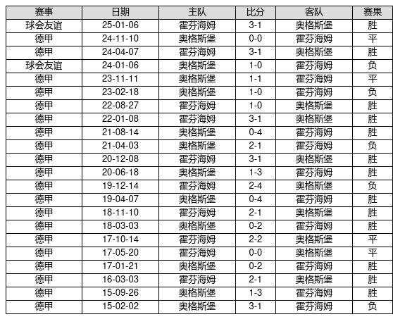 霍芬海姆 VS 奥格斯堡两队近10年的交战次数为22场,霍芬海姆13胜4平5负,赢球概率为59.1%,平局概率为18.2%,输球概率为22.7%。