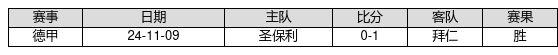 拜仁 VS 圣保利两队近10年的交战次数为1场,拜仁1胜0平0负,赢球概率为100.0%,平局概率为0.0%,输球概率为0.0%。