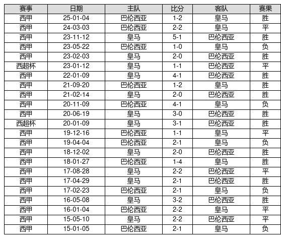 皇马 VS 巴伦西亚两队近10年的交战次数为23场,皇马12胜6平5负,赢球概率为52.2%,平局概率为26.1%,输球概率为21.7%。