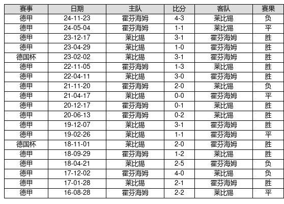 莱比锡 VS 霍芬海姆两队近10年的交战次数为19场,莱比锡11胜4平4负,赢球概率为57.9%,平局概率为21.1%,输球概率为21.1%。