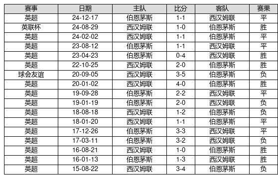 西汉姆联 VS 伯恩茅斯两队近10年的交战次数为17场,西汉姆联6胜6平5负,赢球概率为35.3%,平局概率为35.3%,输球概率为29.4%。