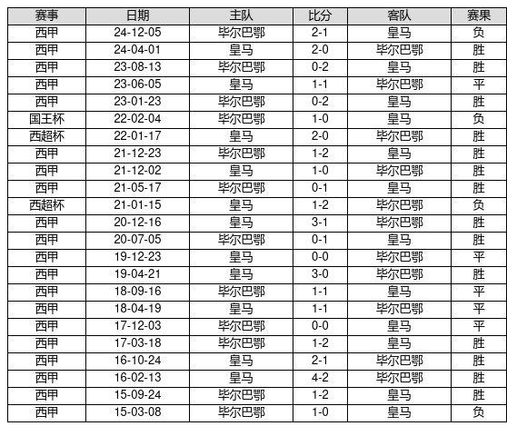 皇马 VS 毕尔巴鄂两队近10年的交战次数为23场,皇马14胜5平4负,赢球概率为60.9%,平局概率为21.7%,输球概率为17.4%。