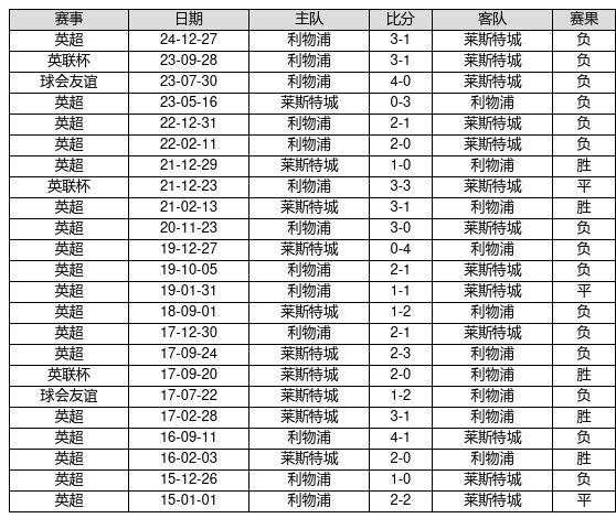 莱斯特城 VS 利物浦两队近10年的交战次数为23场,莱斯特城5胜3平15负,赢球概率为21.7%,平局概率为13.0%,输球概率为65.2%。
