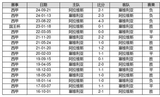 塞维利亚 VS 阿拉维斯两队近10年的交战次数为16场,塞维利亚7胜5平4负,赢球概率为43.8%,平局概率为31.2%,输球概率为25.0%。