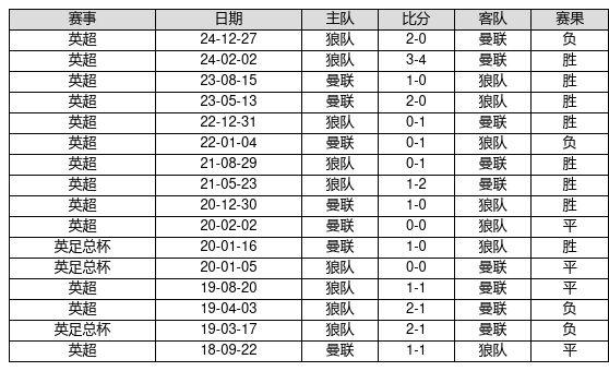 曼联 VS 狼队两队近10年的交战次数为16场,曼联8胜4平4负,赢球概率为50.0%,平局概率为25.0%,输球概率为25.0%。