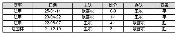 里尔 VS 欧塞尔两队近10年的交战次数为4场,里尔2胜2平0负,赢球概率为50.0%,平局概率为50.0%,输球概率为0.0%。