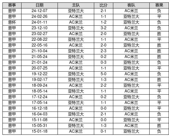 AC米兰 VS 亚特兰大两队近10年的交战次数为22场,AC米兰6胜8平8负,赢球概率为27.3%,平局概率为36.4%,输球概率为36.4%。