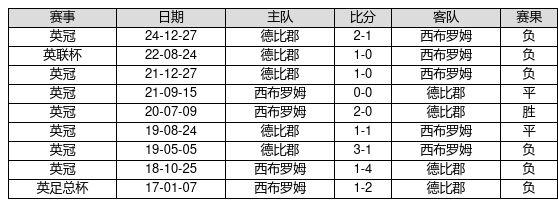 西布罗姆 VS 德比郡两队近10年的交战次数为9场,西布罗姆1胜2平6负,赢球概率为11.1%,平局概率为22.2%,输球概率为66.7%。