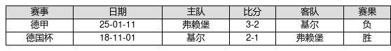 基尔 VS 弗赖堡两队近10年的交战次数为2场,基尔1胜0平1负,赢球概率为50.0%,平局概率为0.0%,输球概率为50.0%。