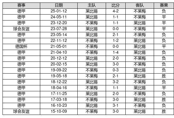 不莱梅 VS 莱比锡两队近10年的交战次数为18场,不莱梅3胜5平10负,赢球概率为16.7%,平局概率为27.8%,输球概率为55.6%。