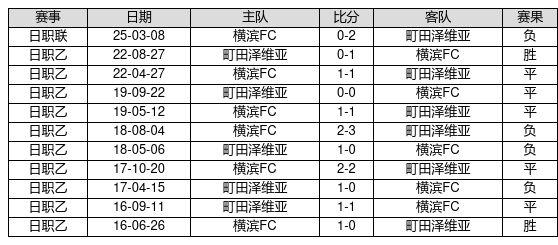 横滨FC VS 町田泽维亚两队近10年的交战次数为11场,横滨FC2胜5平4负,赢球概率为18.2%,平局概率为45.5%,输球概率为36.4%。
