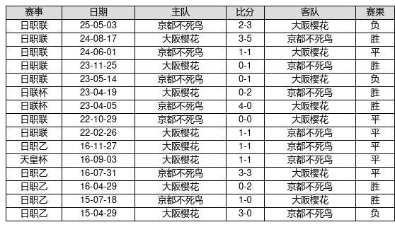 京都不死鸟 VS 大阪樱花两队近10年的交战次数为15场,京都不死鸟6胜6平3负,赢球概率为40.0%,平局概率为40.0%,输球概率为20.0%。