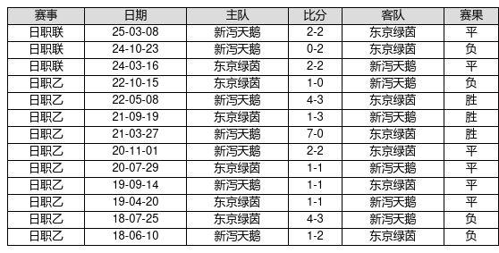 新泻天鹅 VS 东京绿茵两队近10年的交战次数为13场,新泻天鹅3胜6平4负,赢球概率为23.1%,平局概率为46.2%,输球概率为30.8%。