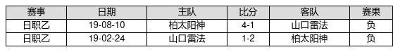 山口雷法 VS 柏太阳神两队近10年的交战次数为2场,山口雷法0胜0平2负,赢球概率为0.0%,平局概率为0.0%,输球概率为100.0%。
