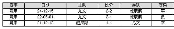 威尼斯 VS 尤文两队近10年的交战次数为3场,威尼斯0胜2平1负,赢球概率为0.0%,平局概率为66.7%,输球概率为33.3%。