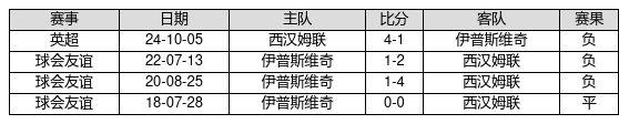 伊普斯维奇 VS 西汉姆联两队近10年的交战次数为4场,伊普斯维奇0胜1平3负,赢球概率为0.0%,平局概率为25.0%,输球概率为75.0%。