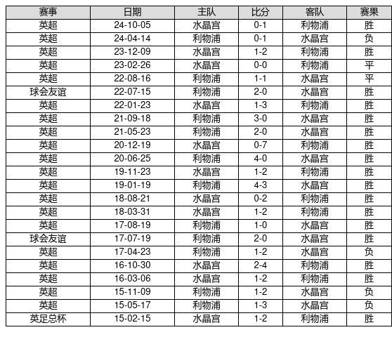 利物浦 VS 水晶宫两队近10年的交战次数为23场,利物浦17胜2平4负,赢球概率为73.9%,平局概率为8.7%,输球概率为17.4%。