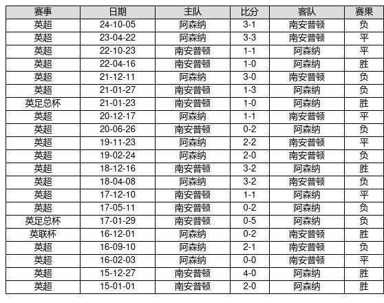 南安普顿 VS 阿森纳两队近10年的交战次数为21场,南安普顿6胜6平9负,赢球概率为28.6%,平局概率为28.6%,输球概率为42.9%。