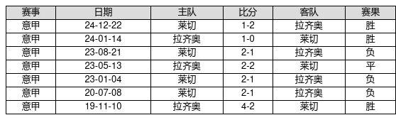 拉齐奥 VS 莱切两队近10年的交战次数为7场,拉齐奥3胜1平3负,赢球概率为42.9%,平局概率为14.3%,输球概率为42.9%。