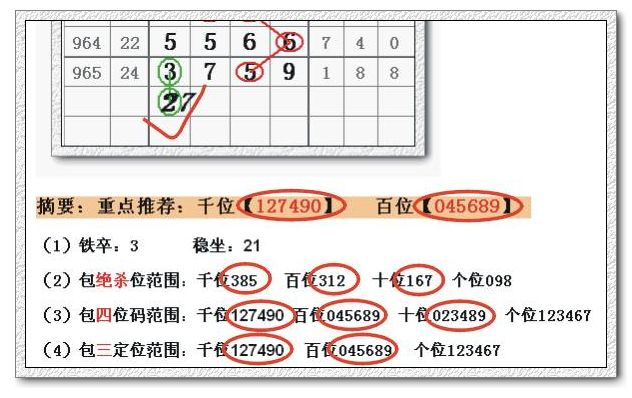 (2)绝杀包码范围:千位49 百位274 十位327 个位407