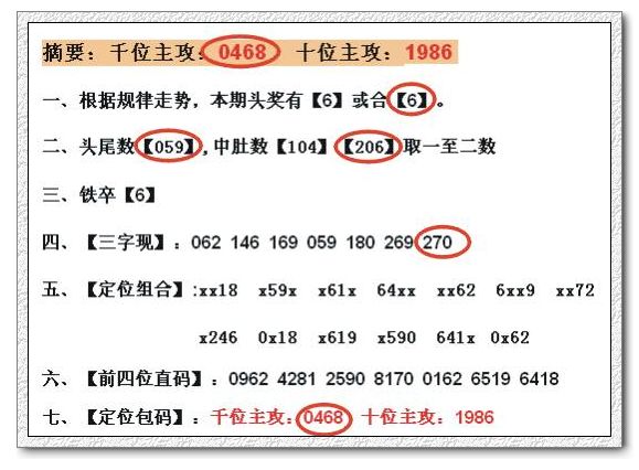 七、【定位包码】:千位主攻:1369 个位主攻:1205