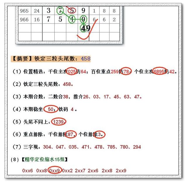 (1)位置精选:千位主攻164防92;百位重点706防48;个位主攻2058防36。