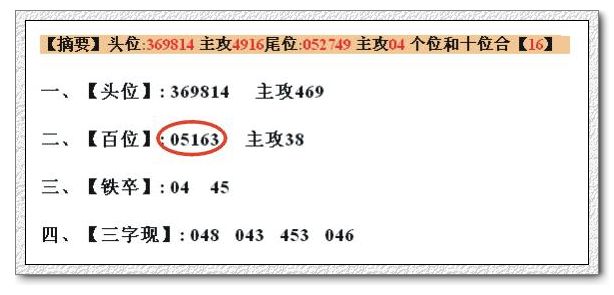 【摘要】头位:051638 主攻1638尾位:369814 主攻16 个位和十位合【49】