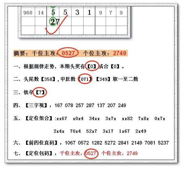 七、【定位包码】:千位主攻:0461 十位主攻:2579