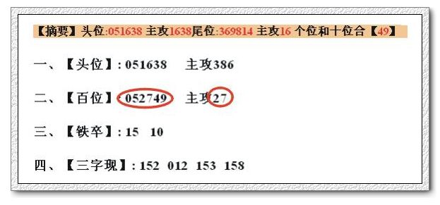 【摘要】头位:051638 主攻036尾位:147692 主攻19 中肚两数合【3849】