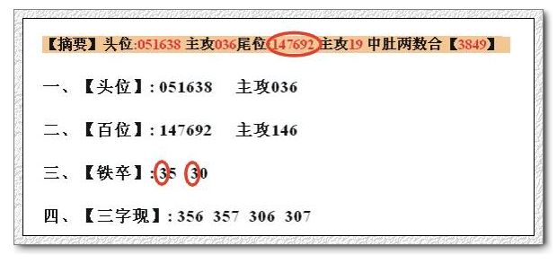 【摘要】头位:147698 主攻147尾位:258703 主攻38 中肚两数合【05】