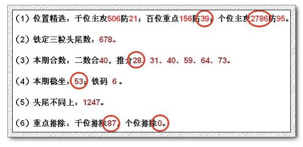 (1)位置精选:千位主攻316防02;百位重点526防39;个位主攻4986防57。