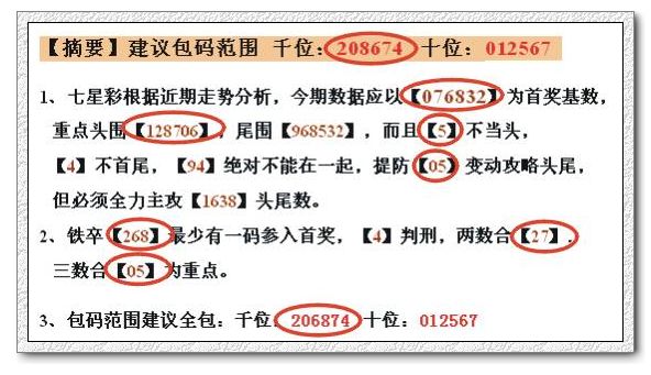 1、七星彩根据近期走势分析,今期数据应以【123678】为首奖基数,