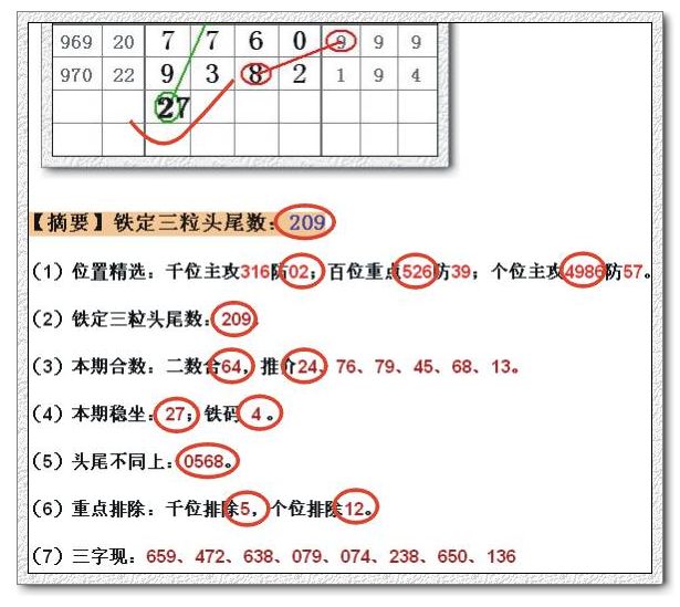 (1)位置精选:千位主攻896防30;百位重点283防94;个位主攻9037防68。