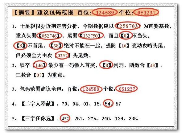 1、七星彩根据近期走势分析,今期数据应以【012567】为首奖基数,