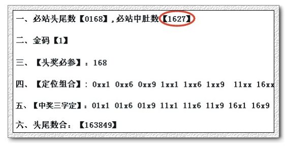 一、必站头尾数【1649】,必站中肚数【0538】