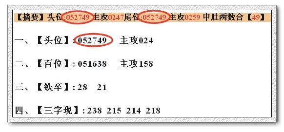 【摘要】头位:013456 主攻0351尾位:369814 主攻369 中肚两数合【38】