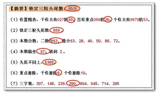 (1)位置精选:千位主攻356防29;百位重点783防56;个位主攻4987防71。
