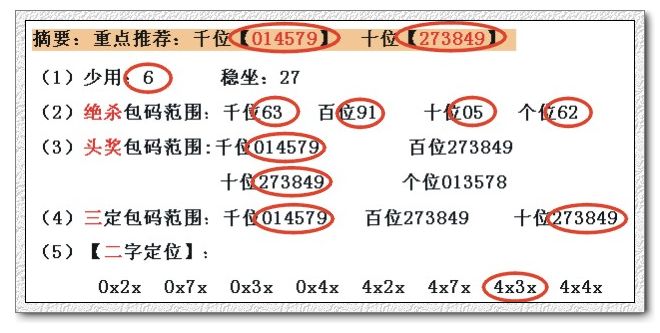 (3)头奖包码范围:千位013569 百位273849
