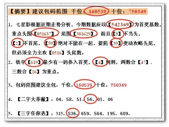 1、七星彩根据近期走势分析,今期数据应以【124569】为首奖基数,