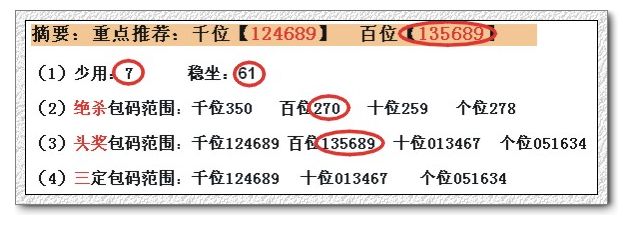 (2)绝杀包码范围:千位270 百位514 十位690 个位796