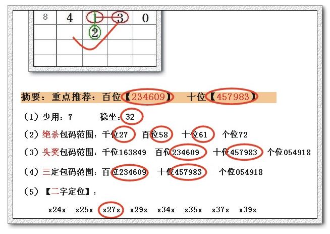 (3)头奖包码范围:千位235689 百位564938 十位123678 个位124579