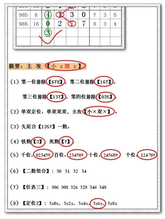 (2)单双定位:双单单双,主攻【×单×大】 。