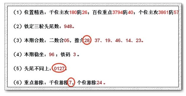 (1)位置精选:千位主攻389防05;百位重点746防31;个位主攻5296防38。