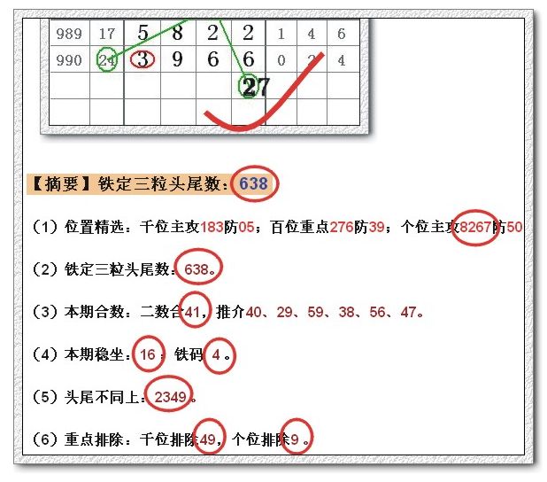(1)位置精选:千位主攻826防01;百位重点493防60;个位主攻4936防81。