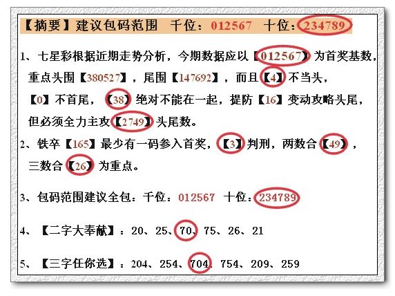 【摘要】建议包码范围 千位:258703 百位:234789