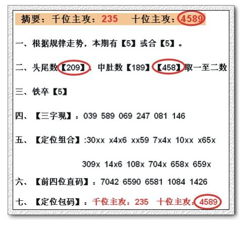 七、【定位包码】:千位主攻:2458 十位主攻:0258