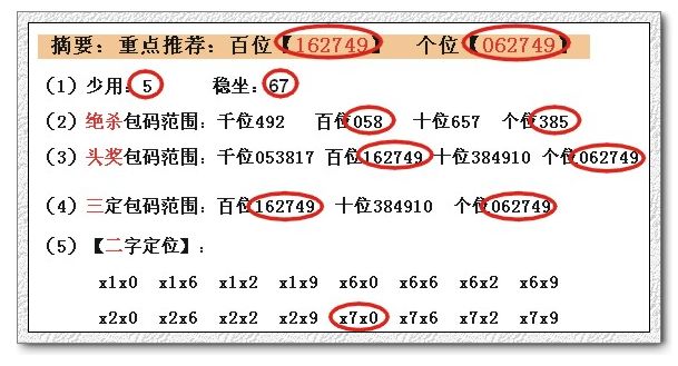 (2)绝杀包码范围:千位130 百位058 十位872 个位270