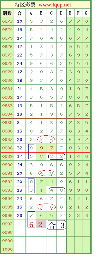 七星彩第10133期(997期)信息预测分解