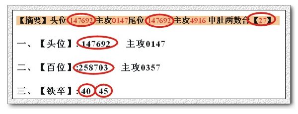 【摘要】头位:245890 主攻0359尾位:052749 主攻2749 中肚两数合【49】